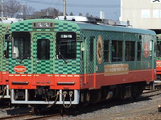 | 1.現有車両 1-1.気動車 モオカ14形:2002(平成14)年)からモオカ63形の老朽代替車として導入。 1-2.客車 オハ50形・オハフ50形: 「SLもおか」の客車として、JR東日本から譲受。 1-3.蒸気機関車 C12 66 福島県伊達郡川俣町のふもと川団地に保存されていたもの。自社線内の運行には、おもにこれが充当。 C11 325 新潟県阿賀野市(旧北蒲原郡水原町)の水原中学校構内に保存されていたもの。 自社線内の運転に充当される場合もあるが、行楽時期にJR東日本に貸し出されることもある。 1-4.ディーゼル機関車 DE10 1535:2004(平成16)年8月下旬にJR東日本から購入。「SLもおか」の回送用。 1-5.その他の車両 TMC300型軌道モータカー: 車籍がない機械扱い。保守・工事用。富士重工業製。レール運搬やバラスト散布など。 沿線自治体で組織する芳賀地区広域行政組合と筑西市(当時の下館市)の委託を受け、1994(平成6)年3月27日から蒸気機関車牽引列車(SL列車)として「SLもおか」の運転を行っており、2両の蒸気機関車(C12 66, C11 325)を保有。 2.過去の在籍車両 2-1.気動車 モオカ63形 1988(昭和63)年の開業に際して導入された軽快気動車(富士重工業製のLE-Car II)。 後継のモオカ14形に代替され、2006年に形式消滅。 2-2.ディーゼル機関車 DD13 55 元は1992(平成4)年に神奈川臨海鉄道から購入したDD55 4。 蒸気機関車牽引列車の補助機関車・回送用として使用された。2004年11月に退役。 3.保存展示車両 1-1.気動車:国鉄キハ20系 1-2.客車:国鉄スハ43系 1-3.蒸気機関車:国鉄9600形 1-4.ディーゼル機関車:国鉄DE10形 1-5.貨車:ト1形,トラ70000形,ワフ1形,ワフ29500形,ヨ5000形,ヨ8000形,蒲原ワ11形 |