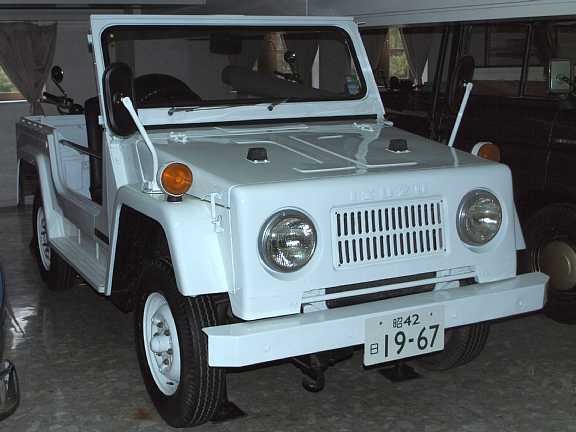 ユニキャブは、1967-1974年に販売された小型貨物自動車。ジープのムードを取り入れたユニークなFR車。前後サスはワスプ(小型トラック)、初期エンジン(KR80型)はベレット用1.3L(G130型)の流用。その後も、他車共通の1.5、1.6Lへと変更(KR85、KR86型)。当初の定員は4名で、KR85型から、前2/後3名ずつの対向シートを持つ、8人乗りが追加。2名乗車時最大積載量は400kg。当初は、フロントウィンドシールドを前に倒すことで、完全なオープンカーとなったが、その後の保安基準改正により禁止。 |