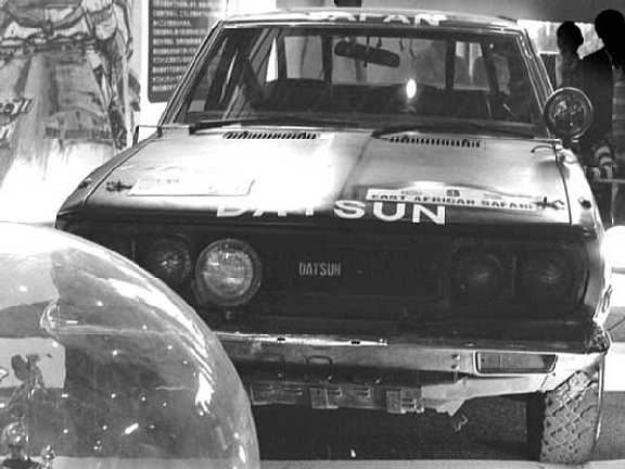 写真は、1973年サファリラリーにて総合2位。クラス優勝車。 この写真は1973年に撮ったものだが、最近でも保存され展示会に出されているらしい。 ネットの写真を見ると車体色は赤。ハレーションしちゃっているボンネットの向かって左側にあるプレートには、「TKS55 YA9191」と書いてあるんだね。 |