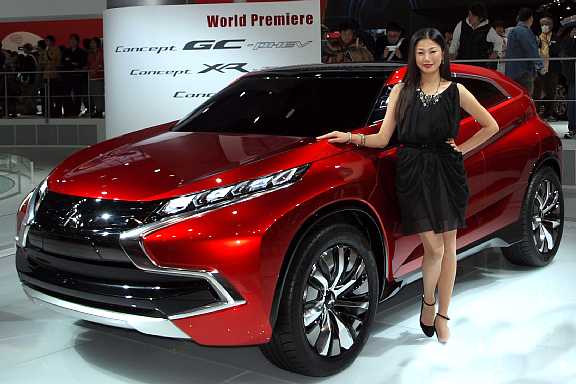 アウトランダーPHEVをベースにFF化し、軽量・高効率なPHEVシステム、1.1L直噴MIVECターボエンジンを積んだ、スポーティーなコンパクトSUV。ルーフにはソーラーパネルを装備し、補器用バッテリーを充電。ルーフ後端には走行状態に応じて角度を調整できる可変スポイラーを採用。