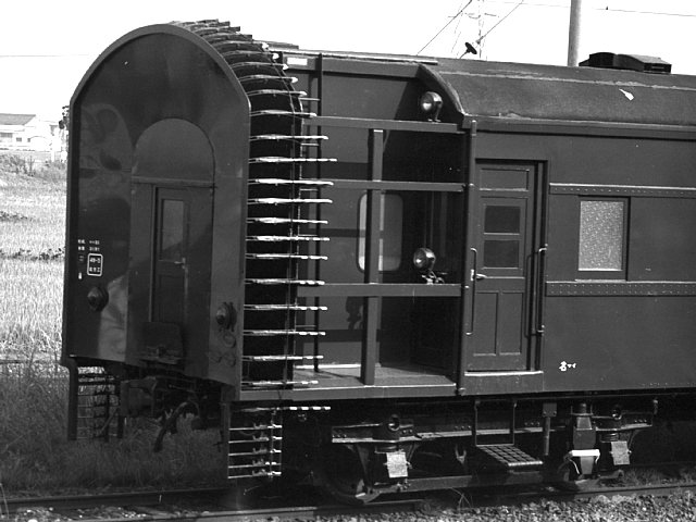 オヤ31形は、日本国有鉄道(国鉄)が既存客車の改造により製作した建築限界測定用試験車(事業用客車)。 1949(昭和24)年-1961(昭和36)年に、計7両が国鉄工場で改造製作。スハ32系に属する。 測定中の様子から、「おいらん車」(「オイラン車」)とも呼ばれる。車体塗色は茶色(ぶどう色2号)。 |