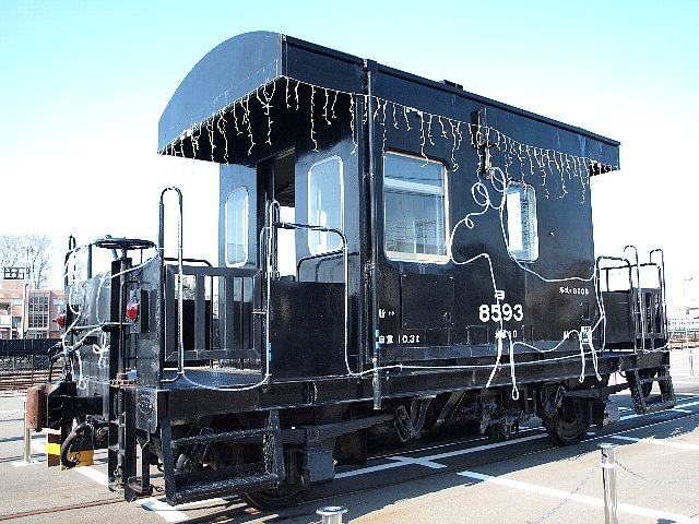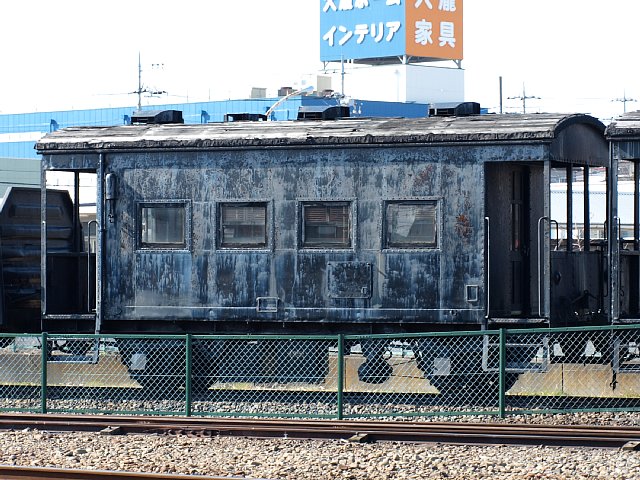 L×W×H(mm) 7,000×2,500×3,700 重さ 9.7t 最高速度 85km/h 製造初年 昭和34年 車両番号は正確には読み取れないが、展示の2台がヨ14594とヨ14720であることは分かっているらしい。もう一台が14594の文字跡が残っているため、こちらが14720と判断した。 |