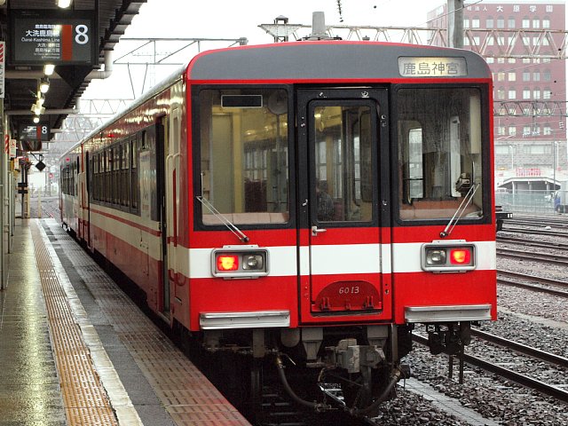 両運転台式の大洗鹿島線用気動車。 1985(昭和60)年から日本車輌製造および新潟鐵工所のライセンス生産で製造。 開業時に6両製造、以後1993(平成5)年までに合計19両が製造。 全長は20.5m、トイレや冷房装置を装備。 室内はセミクロスシートでクロスシート部は転換クロスシート。 ディーゼルエンジンをはじめとする走り装置は日本国有鉄道(国鉄)キハ37形に準じるが、現在のキハ37形は横型(水平シリンダー)エンジンに換装され、6000形は日本の気動車で唯一縦形(直立シリンダー)直噴エンジンを搭載。 6000形に搭載された新潟鐵工所製「6L13AS」エンジンは、国鉄の過給器付き直噴式縦形(直立シリンダー形)エンジンDMF13S形 (210PS/1,600rpm) と同型。 新製時よりワンマン運転対応設備を装備、2001(平成13)年4月から使用開始。 6001-6006:1985年 日本車輌製造 |